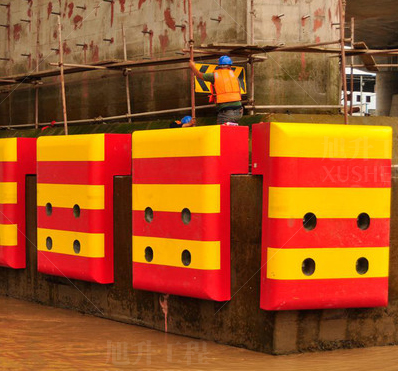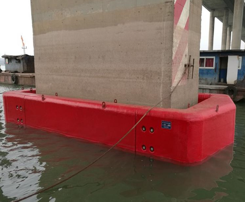 復合材料防撞設施根據需求形式可以分類為固定式和自浮式兩種型式,固定式復合材料防撞設施固定安裝在橋梁的橋墩防撞部位;自浮式復合材料防撞設施安裝在橋梁的橋墩四周,隨著江面(河道、海面)水位的高低自浮式復合材料防撞設施依靠自身的浮力沿著橋墩軸線上下升降,復合材料防撞設施始終處于船舶的撞擊高度。復合材料防撞設施有矩形、半圓形、圓形、異面形、多邊形等等;安裝方式有單個單元懸掛型式、多單元卯榫結構或插銷組合結構,各結構類型便于運輸、安裝。