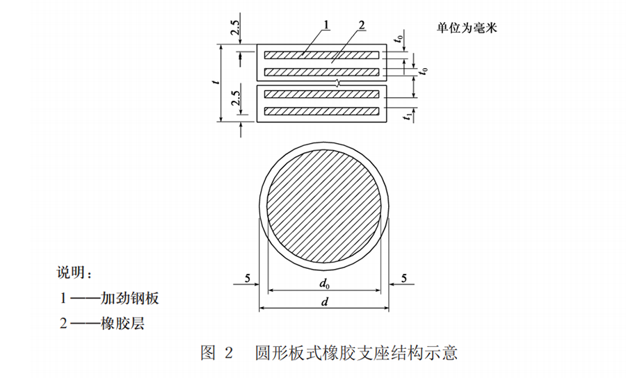 板式橡膠支座由兩層以上加勁鋼板和橡膠組成,且鋼板應全部包在橡膠體內形成的支座。