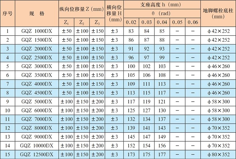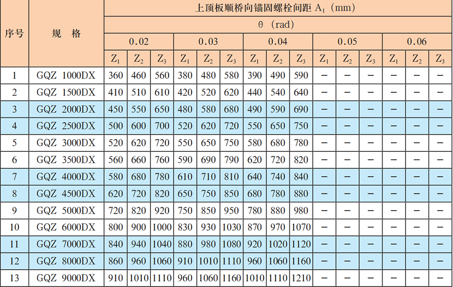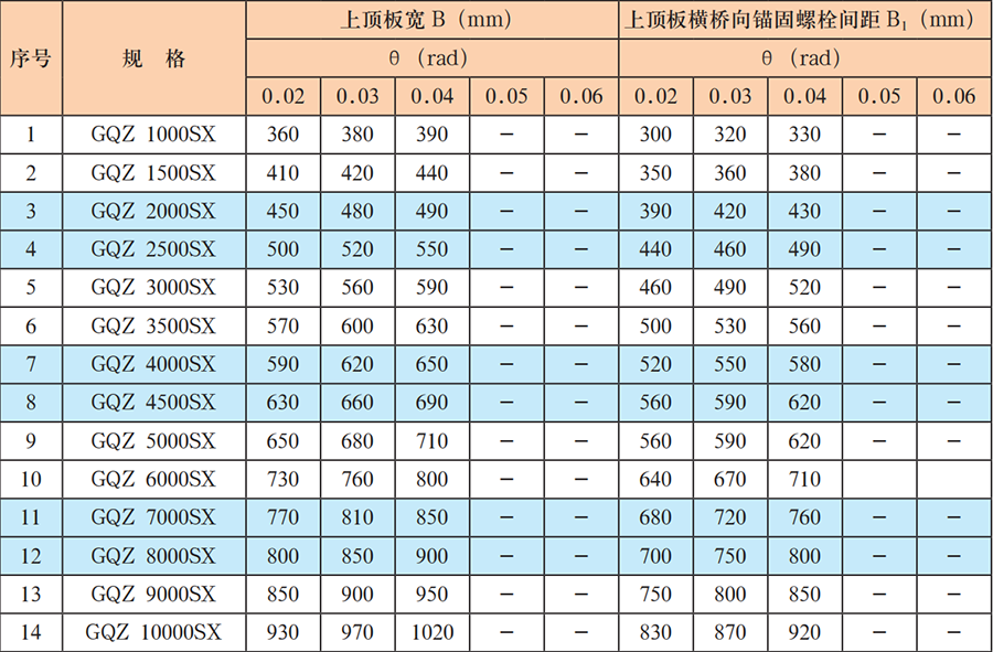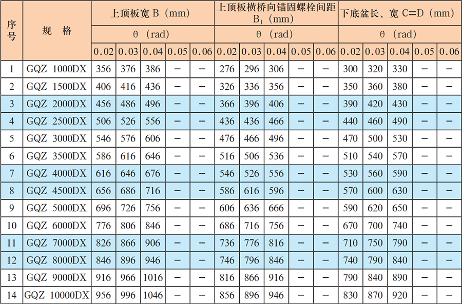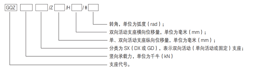 5.1 單向活動支座 GQZ-DX 結構示意圖見圖 1,其規格系列見表 1。