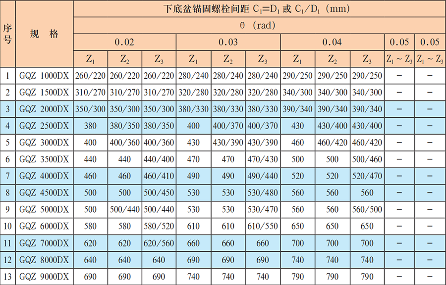 C1、D1——下底盆錨固螺栓間距,單位為毫米(mm)